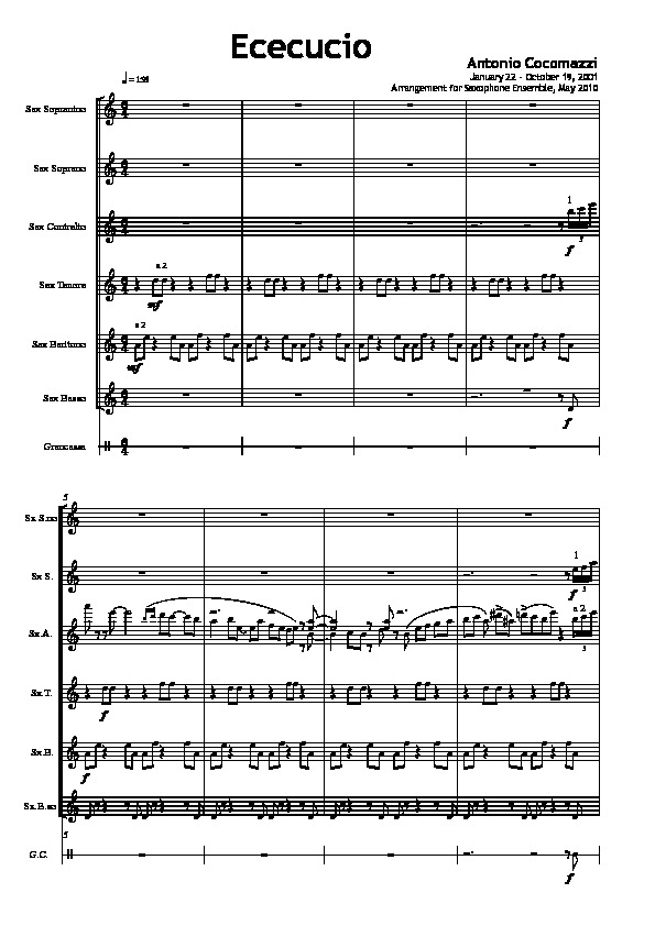 Versione (2010) per Ensemble di 12 sassofoni (1SI, 2S, 3A, 3T, 2B, 1BS) e Percussioni (Grancassa).