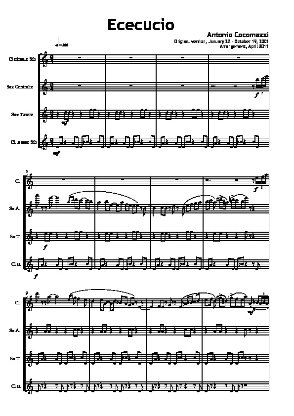 Versione (2011) per Quartetto di Clarinetto in Si b, Sax alto, Sax tenore, Clarinetto basso. L’autore l’ha arrangiata dalla propria omonima opera del 2001 originariamente per sax soprano, pianoforte, contrabbasso, percussioni ad libitum.