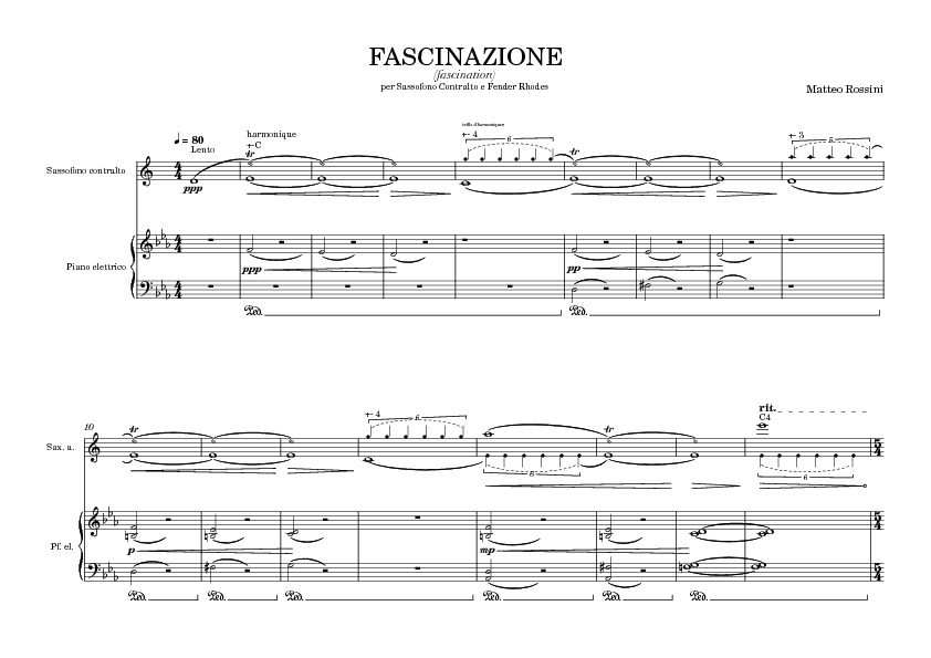 (fascination) Sassofono Contralto e Fender Rhodes, scritto in occasione dell’ATELIER di COMPOSIZIONE INTERPRETAZIONE E REALIZZAZIONE FONOGRAFICA a Parigi, dal 23 al 30 marzo 2025 tenuto dal saxofonista francese Daniel Kientzy e dall’organizzatore compositore italiano Francesco Maria Paradiso per lo STUDIO NOVA MUSICA – MaRSMMuCK, sede operativa di Kientzy.