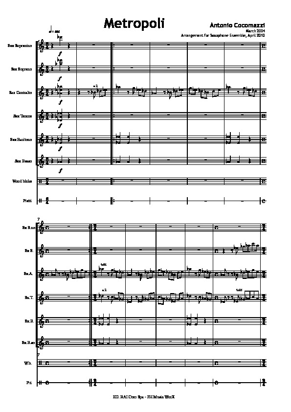 Versione (2010) per Ensemble di 12 sassofoni (1SI, 2S, 3A, 3T, 2B, 1BS) e 2 Percussionisti [Wood bloks e Piatti].
