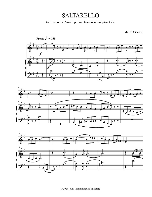 Saltarello: versione per saxofono soprano e pianoforte dall’originario proprio lavoro per saxofono soprano e chitarra.