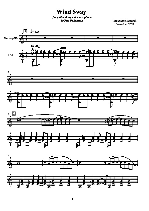 «Duo for guitar & soprano saxophone to Rob Nathanson.»